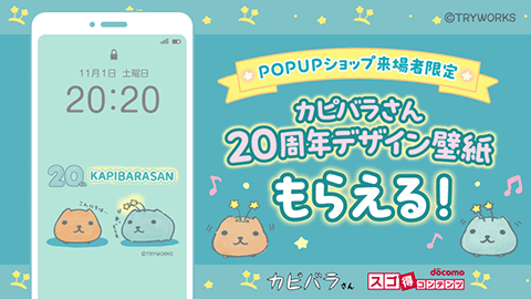 「カピバラさん forスゴ得」でも20周年デザインの壁紙を配信中!